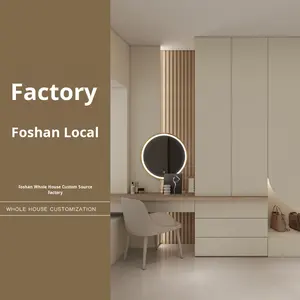 Desain Kamar Tidur Modern dan Sederhana dengan Lemari Pakaian Built-in dari Kayu Solid, Furnitur Lemari Buatan Khusus untuk Apartemen.