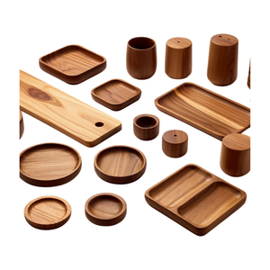 OEM kustom ekstra besar baki bulat kayu akasia bagian kayu CNC dengan Logo ukiran hadiah bisnis kerajinan peralatan makan