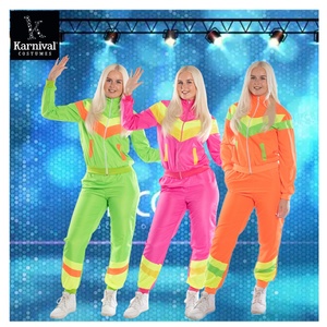 Setelan olahraga cangkang Neon wanita 80s 90s Premium stok tersedia untuk pertunjukan pesta karnaval Halloween termasuk celana yang dirancang dengan baik
