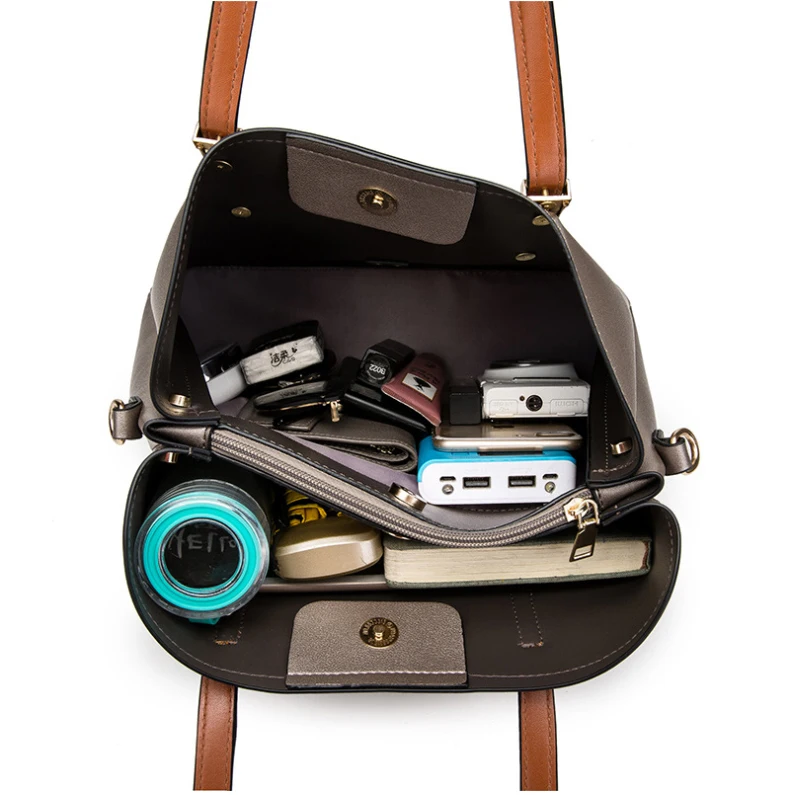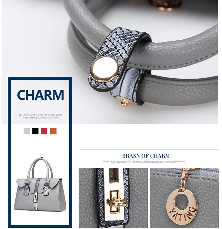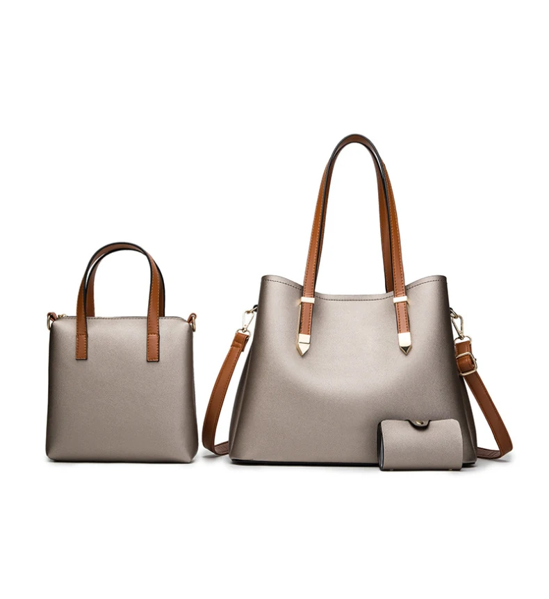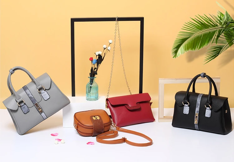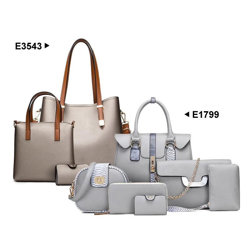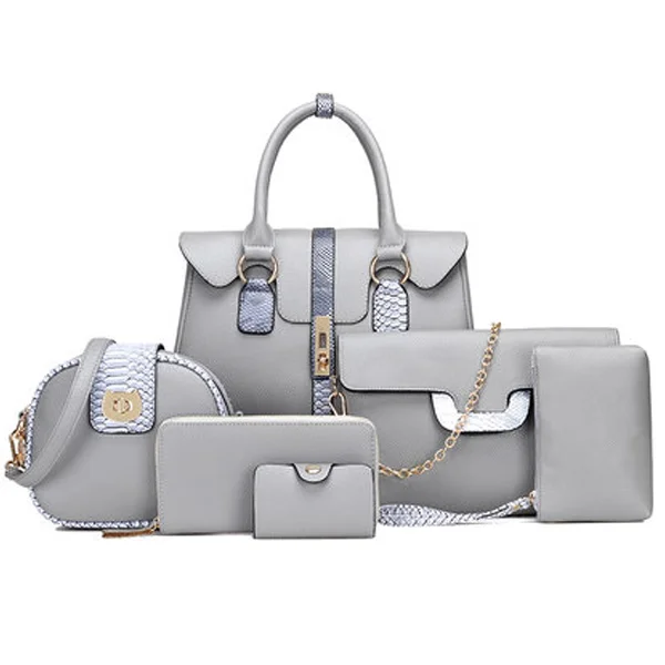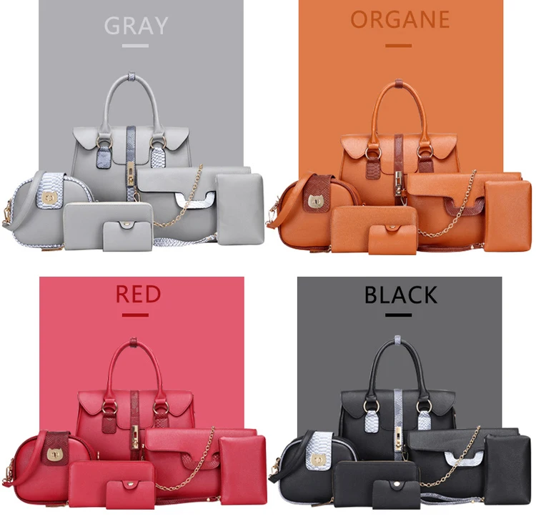 2019 Wanita Terbaru Besar PU Kulit Tas Klasik Set 6in1 PU Kulit Tas